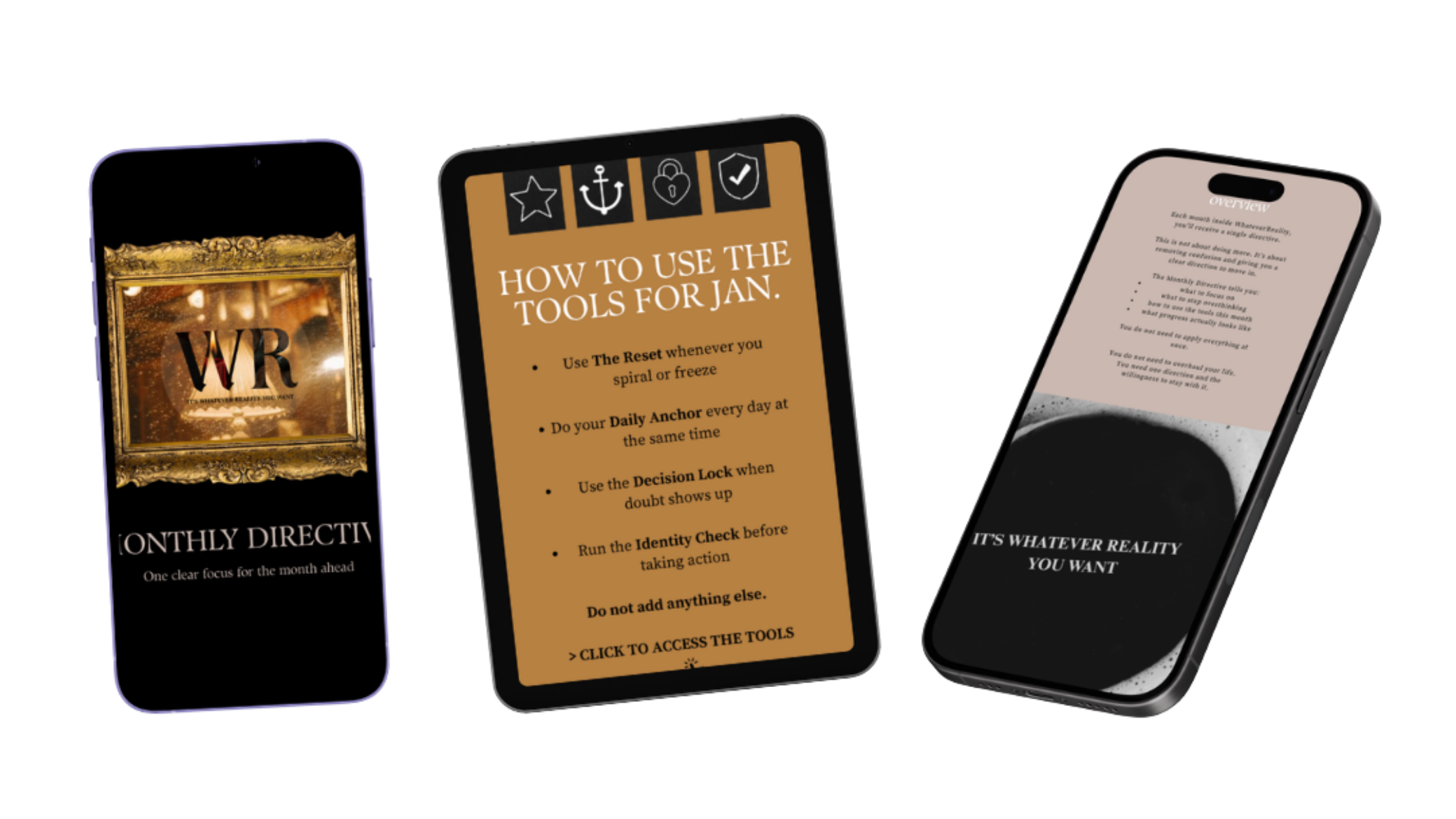 This is for people who are done consuming and ready to move. WhateverReality is a monthly container built around nervous system regulation, subconscious reprogramming, and decisive action. You are given clear direction on what to focus on, what to stop doing, and how to follow through without spiraling or burning out. This is not motivation. This is not mindset fluff. This is structure for real change.